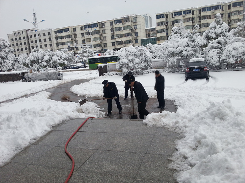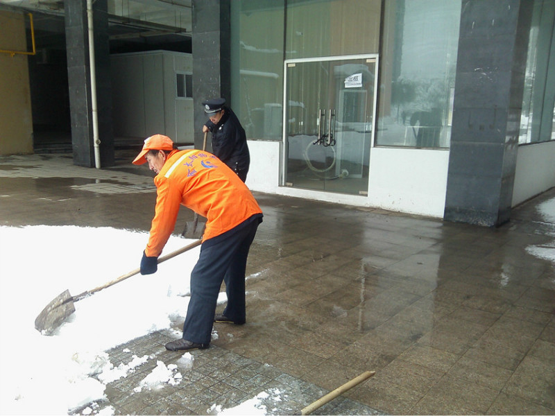 從2月18日晚開始,我市出現(xiàn)降雪、降溫、冰凍天氣,路面積雪給市民安全出行和正常的生產(chǎn)生活帶來了極大不便。為此、金太陽物業(yè)公司緊急下達(dá)通知,組織各管理處人員迅速行動(dòng),采取有效措施,清掃積雪,確保過往行人及車輛安全。