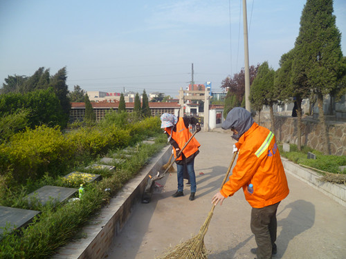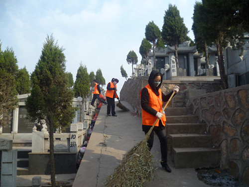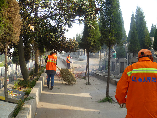 由于祭祀的人比較多,打掃起來還是比較困難的。但是金太陽的管理人員以及保潔員不怕臟不怕苦,將陵園打掃干凈。