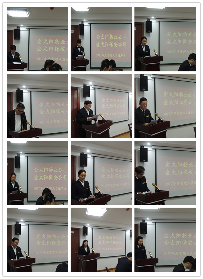 “金太陽” 管理人員述職大會(huì),到場的30位管理人員先后述職。各述職人分別陳述了自己任職情況,履行崗位職責(zé),完成工作任務(wù)的成績、缺點(diǎn)問題、設(shè)想等。