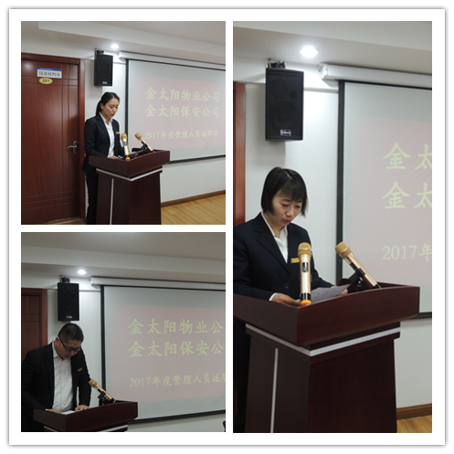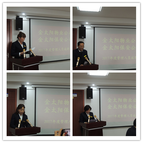 2018年2月10日8︰00,在公司會(huì)議室,馬鞍山市金太陽物業(yè)管理(保安服務(wù))有限公司舉行管理人員述職大會(huì),會(huì)議由“金太陽” 兩公司總經(jīng)理袁夢雪女士主持,董事長朱曉梅女士出席述職大會(huì)。