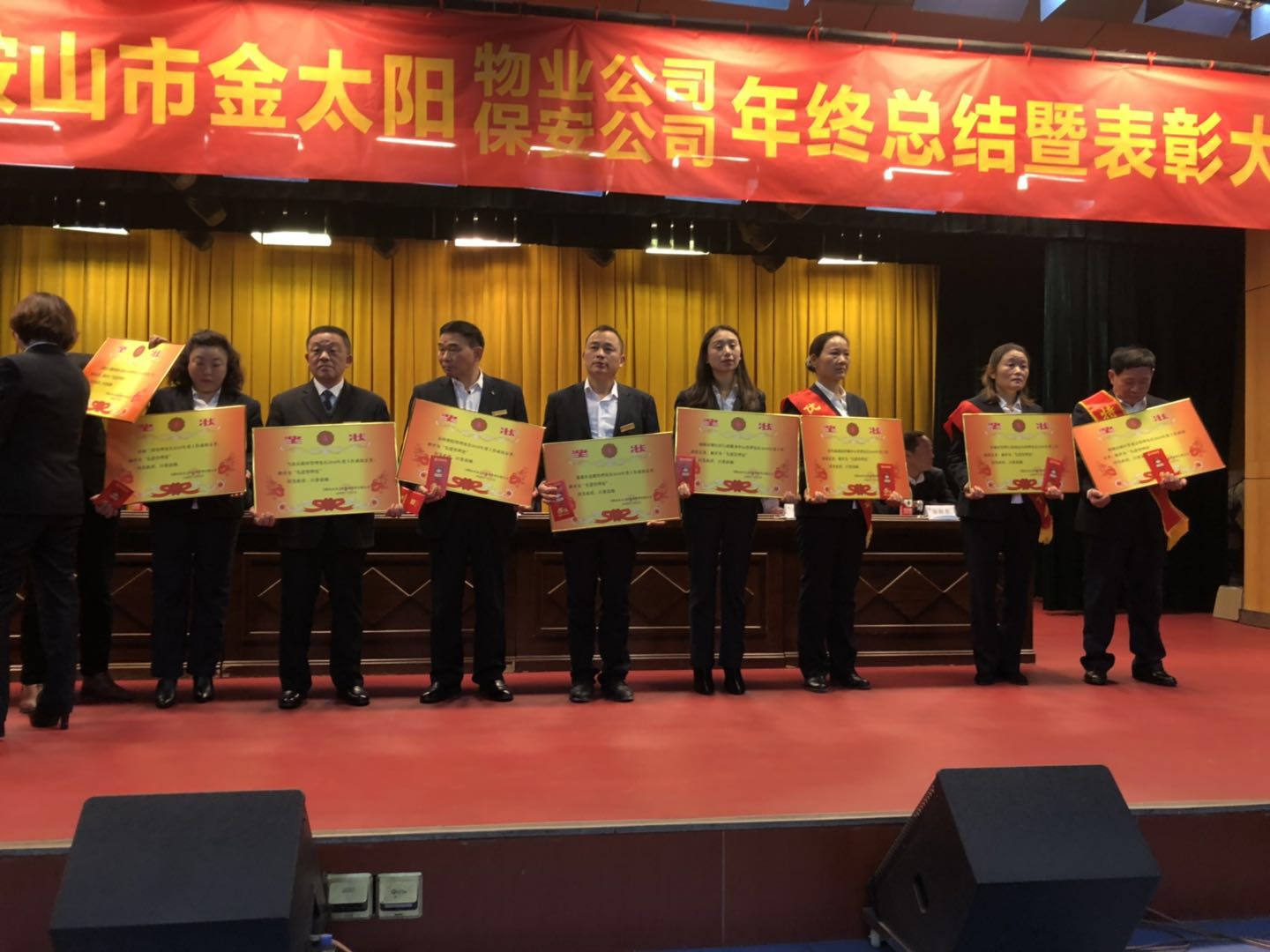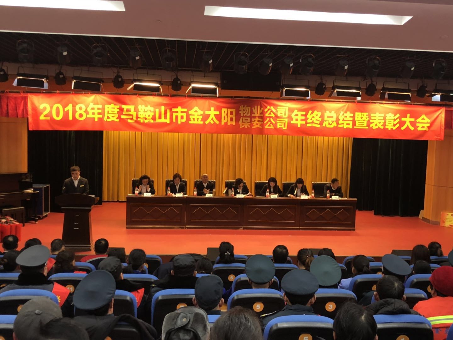 時光荏苒,歲月更迭。轉(zhuǎn)眼間忙碌的一年已經(jīng)過去,伴隨著激情與挑戰(zhàn),新的一年即將到來。值此辭舊迎新之際,馬鞍山市金太陽物業(yè)管理(保安服務(wù))有限公司“2018年度金太陽物業(yè)管理(保安服務(wù))有限公司年終總結(jié)暨表彰大會”于2019年1月19日下午13:00準(zhǔn)時在市新三館隆重召開。現(xiàn)場一百多位員工在此刻歡聚一堂,共話今夕,“金太陽”兩公司董事長朱曉梅女士、總經(jīng)理袁夢雪女士、執(zhí)行經(jīng)理朱曉軍女士、當(dāng)涂縣分公司總經(jīng)理盛傳樹、鄭蒲港新區(qū)分公司負責(zé)人、銅陵市分公司負責(zé)人、各管理處負責(zé)人等出席盛會。
