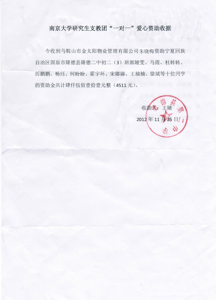 近年來,金太陽物業(yè)董事長(zhǎng)朱曉梅針對(duì)寧夏回族自治區(qū)固原市隆德縣隆德二中助學(xué)項(xiàng)目進(jìn)行愛心資助,并在公司設(shè)立有慈善助學(xué)基金專戶。每年都會(huì)按時(shí)將資助款…
