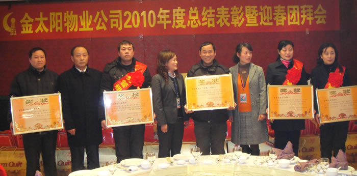 金虎辭舊歲,玉兔迎新春,金太陽(yáng)物業(yè)公司于2011年1月23日下午在夢(mèng)都臨湖隆重舉行2010年度總結(jié)表彰暨迎春團(tuán)拜會(huì)。會(huì)議由工會(huì)主席朱曉軍同志主持,主要分…